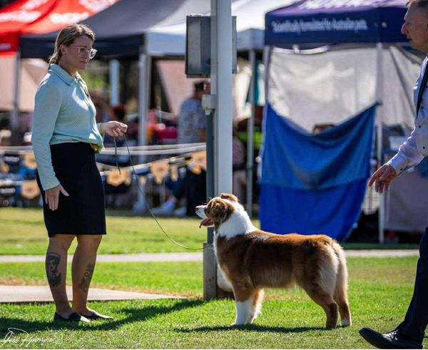 A beautiful red tri female - Champion Blueamble The Devil Within, she combines beauty, talent, and charm effortlessly. Though not frequently shown, she consistently shines when she steps into the ring, easily claiming titles against lovely competition. Her rich, vibrant red coat is complemented by a beautiful, flowing sidegait that turns heads at every glance. Full of life and energy, she embraces every moment with joy and confidence, always carrying herself with a “look at me” attitude that makes her unforgettable. Beyond her physical elegance, she has a playful, spirited nature that endears her to everyone around her, making her not just a show ring star but a true delight to live with.